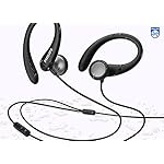 PHILIPS A1105 in-Ear Sports Wired Headphones with Ear Hooks for Secure Fit, Deep bass, in-line Remote Control and Microphone, Sweat-Resistant, 3.5 mm Connector TAA1105BK