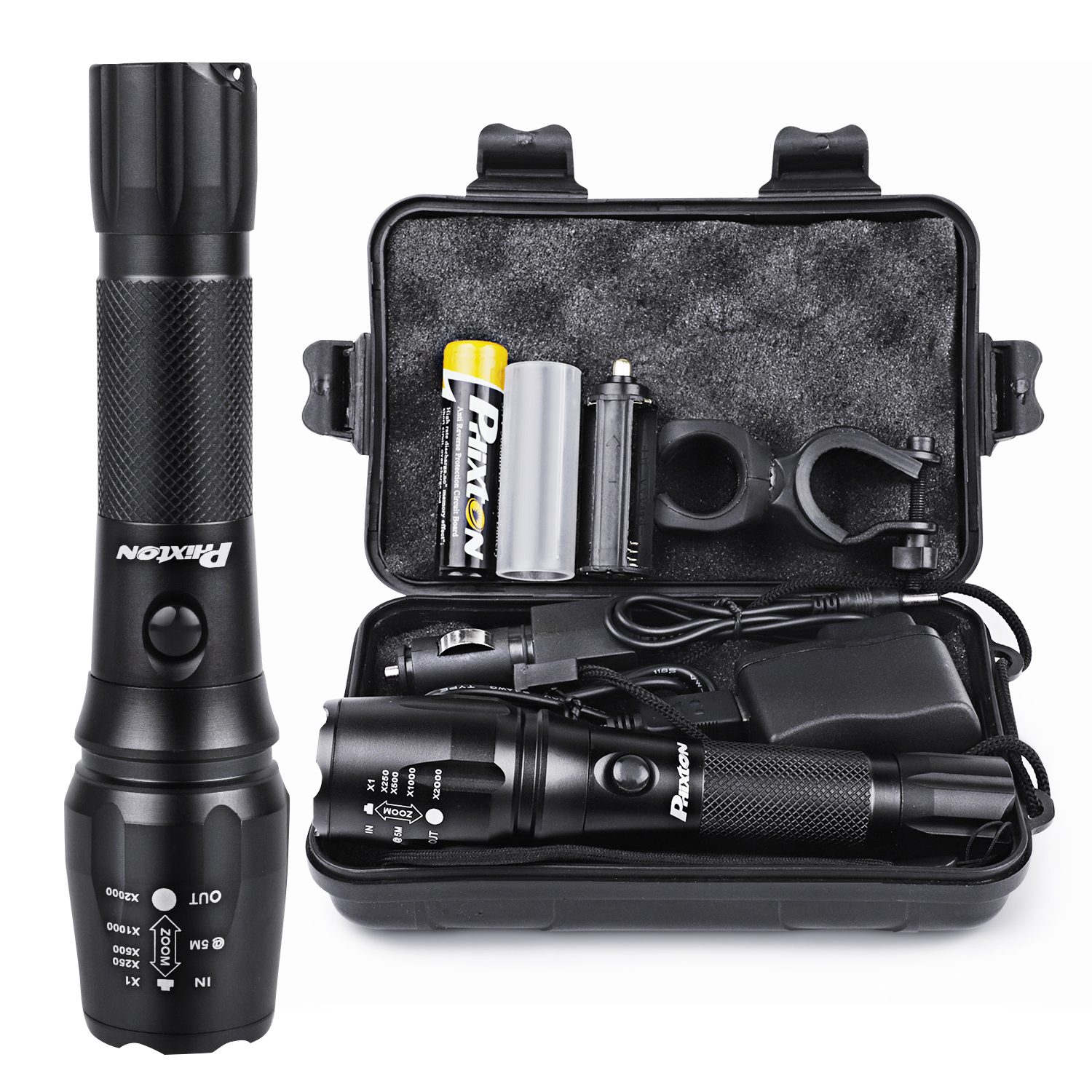 PHIXTON Rechargeable High Lumens Handheld Flashlight, Super Bright 5000 Lumen XM L2 LED Flash Light Linterna, Long Lasting,Zoomable,Waterproof,Shockproof,for Emergency Camping Accessories