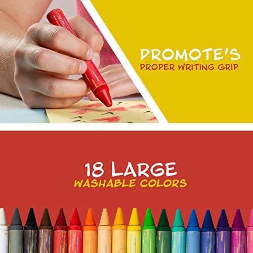 18 COLORS: This set of jumbo crayons includes 18 brilliant colors to make a choice from, making it a good way for kids to be informed about colors, develop eye-hand coordination, and build artistic skills