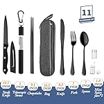 《Multi-function combination》Shuttle Silverware set with case- includes knife,a special included sheathed steak knife,fork,spoon with Shuttle chopsticks, easy-carry zipper-bag.two mini spice jars and a portable straw set ( a telescopic straw and a telescopic straw brush.)