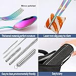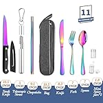 《Multi-function combination》Shuttle Rainbow Silverware set with case- includes knife,a special included sheathed steak knife,fork,spoon with Shuttle chopsticks, easy-carry zipper-bag.two mini spice jars and a portable straw set ( a telescopic straw and a telescopic straw brush.)