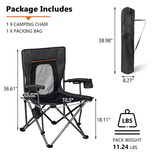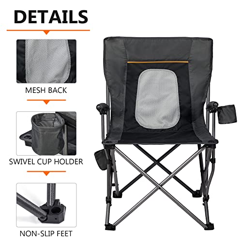 PORTAL Comfortable Portable Lawn Lightweight Foldable Outdoor Camp Chair for Adults, Supports up to 300 lbs, Black