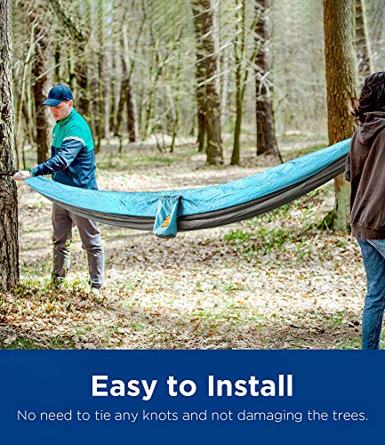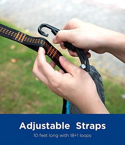Easy to Install: The adjustable tree-friendly strap is 10 feet long coming with 18+1 loops. It is convenient so that you can lock the parachute hammocks to a perfect height and comfort level by these loops. You do not want to tie any knots and would possibly not damage the trees.
