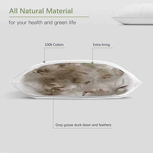 Queen Size Goose Feather Down Pillows Set of 2, Bed Pillows for Sleeping Covered with 100% Cotton Shell,Medium Firm & Breathable White Pillows 2 Pack for Back,Stomach or Side Sleepers (Queen,20”x28”)