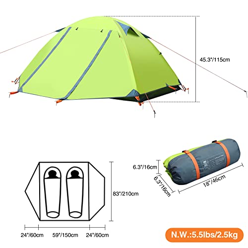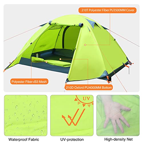 REDCAMP Lightweight Backpacking Tent, 2 Person Camping Tent Waterproof with Rainfly Two Doors for Outdoor Hunting, Hiking, Mountaineering