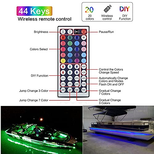【Colorful Boat Lighting 】: Led light strip will also be changed in more different 20 multicolored options, fading patterns,speeds and brightness controls with your preferences by the 44key IR controller, It also will also be DIY the lights color you like. And it have a memory function, when you turn on it,it is going to be the same as last usage.