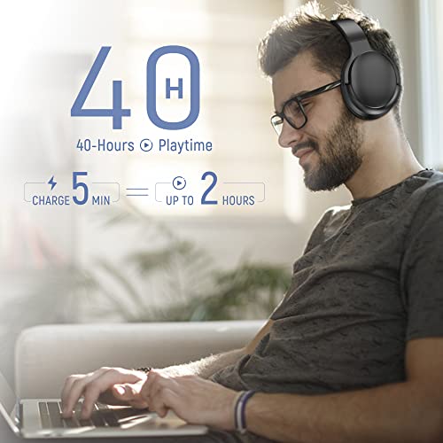 🎶 【40H Playtime&Fast Charge】Up to 40-hour Playtime with quick charging (5 min charge for 2 hours of playback).You can now enjoy 40 hours of uninterrupted music, video or movies in bluetooth mode for long flights or trips with just one full charge.Reminder: It is highly recommended to remove headphones every 1-2 hours, so your ears can relax for a pleasant hearing experience.
