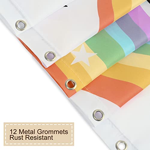 Rainbow Shower Curtain: Easily fits any standard size shower/tub and works with straight or curved shower rods. 17 White plastic hooks easily change the shower curtain ring hooks to match the decor that you like.