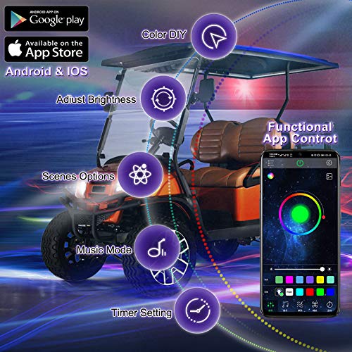Roykaw Golf Cart LED Lights Underbody Kit Standard Million Color LED for EZGO Yamaha Club Car – Waterproof/Bluetooth Control