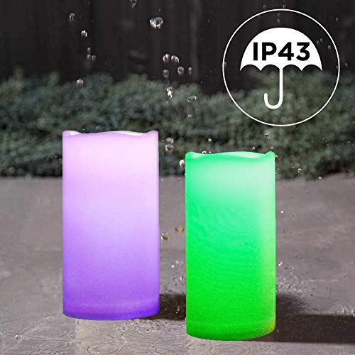 WATERPROOF RESIN, GREAT FOR OUTDOOR, The multi-color out of doors flameless candle set is out of doors use as they may be able to withstand the rain and sun. These weatherproof resin candles are the very best decor for any indoor or out of doors environment.