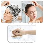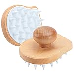 Scalp Massager Shampoo Brush, Wooden Wet and Dry Hair Scalp Care Brush, Shower Brush Scalp Scrubber Exfoliator with Soft Silicone Bristles for Dandruff Removal, Hair Growth (White)