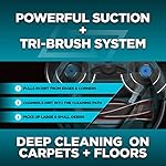 THREE BRUSH TYPES. ONE POWERFUL CLEAN: Tri-Brush System combines side brushes, channel brushes, and a multi-surface brushroll to take care of debris on all surfaces..Runtime : 120 minutes