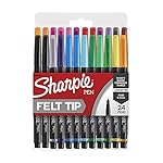 SHARPIE Pens, Felt Tip Pens, Fine Point (0.4mm), Assorted Colors, 24 Count
