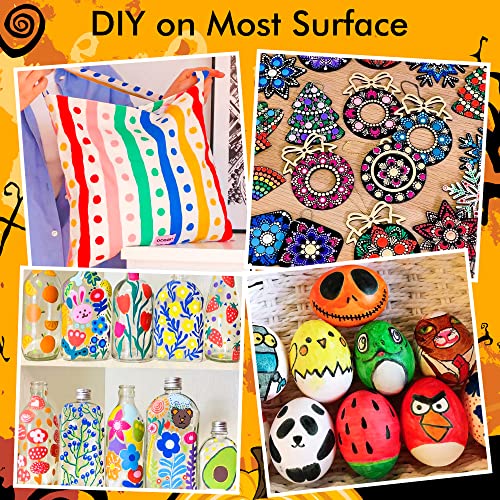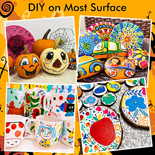 【MULTI-PURPOSE】: Enjoy creating art projects on a number of surfaces, acrylic paint marker set suitable for rock painting, ceramic and mug painting, glass and wine glass painting, wood, fabric, stone, metal, plastic, canvas, Christmas ornament, Halloween pumpkin painting, scrapbook, bullet journal, custom mugs, DIY crafts projects, and much more for both smooth and porous surfaces.