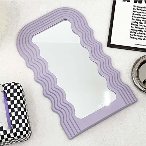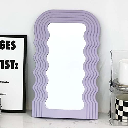 Simmer Stone Aesthetic Wall Mounted Mirror with Wave Irregular Frame Mirror, Decorative Desk Wall Mirror for Living Room Bedroom Hallway Home D¨¦cor Purple
