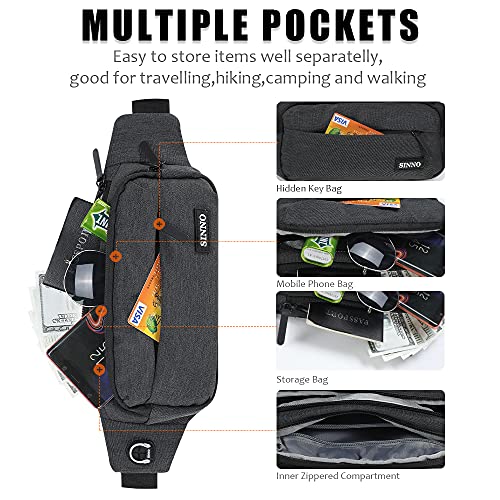 SINNO Large Fanny Pack Belt Bag With 4-Zipper Pockets for Running Hiking Travel Workout Dog Walking Outdoors Sport Fishing Waist Pack Bag