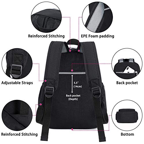 Small Nylon Backpack Mini Casual Lightweight Daypack Backpacks for Women and Girls (Black)