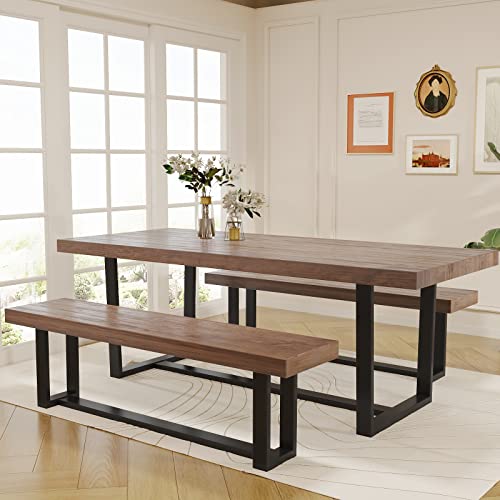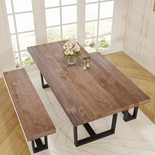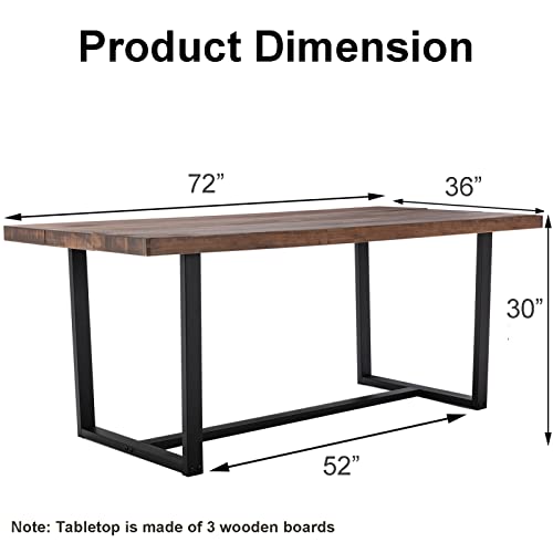 SOSPIRO 72 inch Wood Dining Table for 6 to 8, Industrial Farmhouse Kitchen Table with Steel Legs Metal Frame, Rustic Rectangular Kitchen & Dining Room Table for Home Furniture, Brown