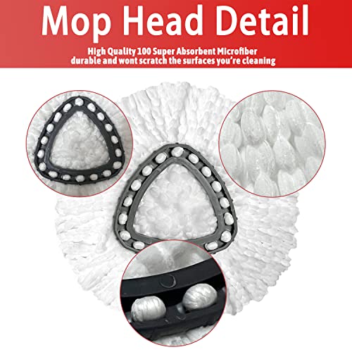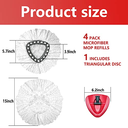 Spin Mop Replacement Head – 4 Pack EasyWring Mop Refills Compatible with Triangle Spin Mop – Microfiber Mop Easy Cleaning Floor Head Mop for Floor Cleaning Includes 1 Rotating Mop Base