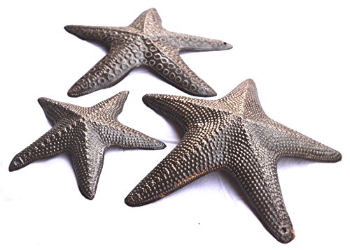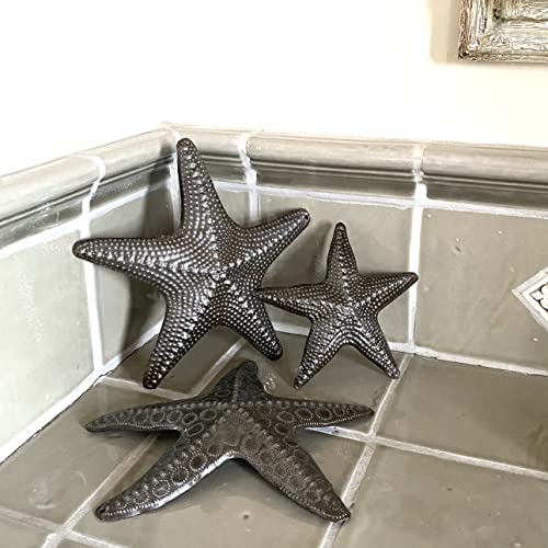 Starfish, Set of 3, Sea Life Nautical Home Decor, Recycled Wall Art 8×8 and 5×5 Inches, Haitian, Decorative, Plaque