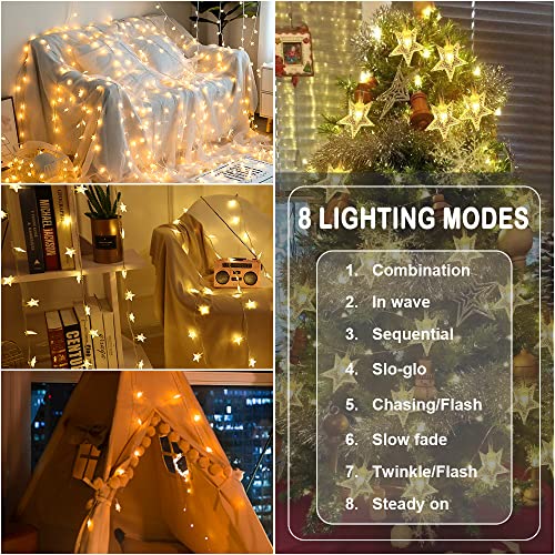 String Lights 20 Ft, 8 Lighting Modes Star Waterproof Outdoor Indoor LED String Lights, Battery Operated with Remote Twinkle Lights for Christmas Decoration Wedding Home Parties Shop(Warm White)