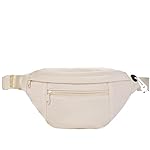 Telena Crossbody Fanny Pack for Women Men Fashion Waist Pack Belt Bag with 4-Zipper Pockets for Hiking Running Travel, Beige