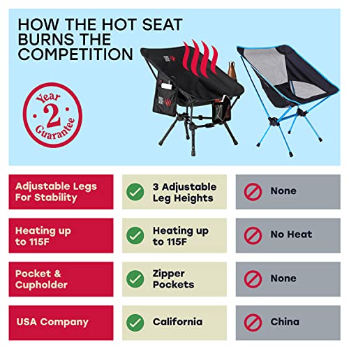 The Hot Seat, Heated Ultralight Compact Outdoor Chair, 2 Zipper Pockets, 1 Cup Holder, Adjustable Height, Easy Assembly, Carry Bag. Perfect for Camping and Backpacking. (Battery NOT Included) by Pop