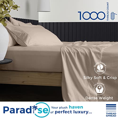 THREAD SPREAD Pure Egyptian Queen Size Cotton Bed Sheets Set (Queen, 1000 Thread Count) Taupe Bed Linen Set – Bedding and Pillow Cases (4 Pc) – Sateen Sheets – 16″ Queen Deep Pocket Sheets