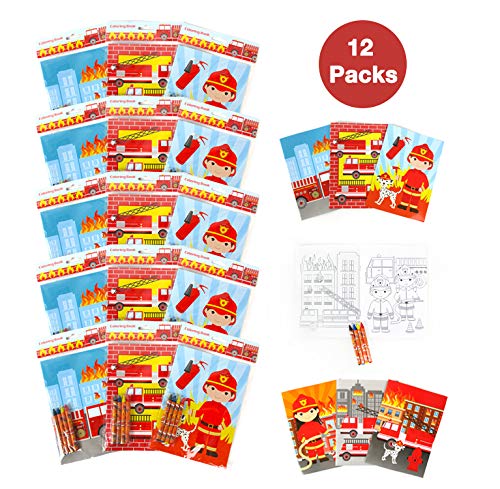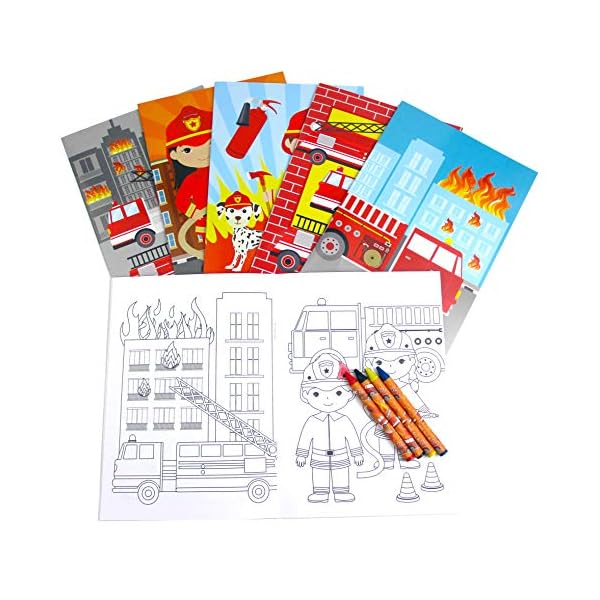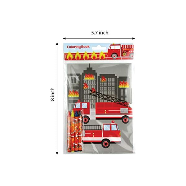 Our Fireplace truck coloring book set is best possible for any Fireplace truck themed party! Every coloring book comes with 16 pages and 4 crayons. The coloring books are compact sufficient for road journeys! Every set in my view wrapped! Nice giveaway for a socially distant birthday celebration! Every booklet measures appx 9 inches tall, 7 inches wide
