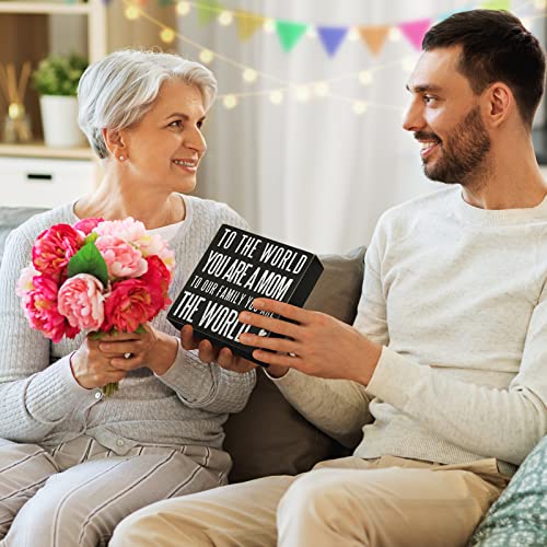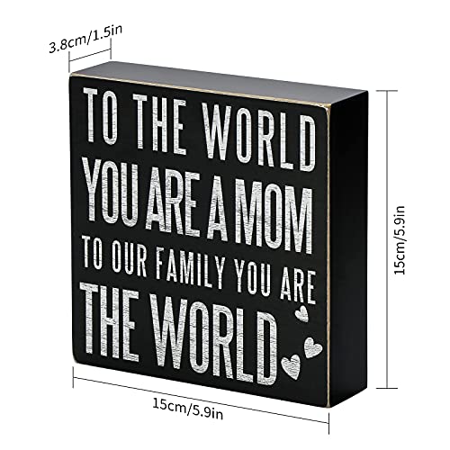 TJ.MOREE Birthday Gifts for Mom, Christmas Gift for Mother 6×6 Wood Box Sign “To the World You Are a Mom, But to Our Family You Are the World” Rustic Home Décor – Mother’s Day Gifts from Son, Daughter (World)