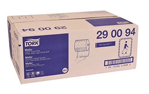 Tork Matic Extra Soft Paper Hand Towel Roll White with Blue Leaf H1, Premium, High Absorbency, 6 Rolls x 300 ft, 290094