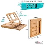 The sturdy tabletop box easel measures 13.25″ wide by 10.25″ deep by 2″ high, and adjusts to 11″ high, and can also be adjusted to four different angle positions depending at the need, and will accommodate canvas art and prints up to 11″ by 14″. This desk box easel is ideal for keeping yourself organized at the same time as painting, drawing, and sketching. It includes a storage drawer with three compartments to organize paints, brushes, tools, and other essential art supplies.