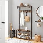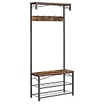 VASAGLE Coat Rack, 3-in-1 Hall Tree, Entryway Shoe Bench Coat Stand, Storage Shelves Accent Furniture Steel Frame Large Size, Industrial, Rustic Brown and Bronze UHSR45AX