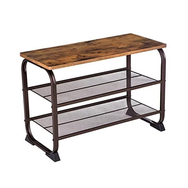 VASAGLE Shoe Bench Rack, 3-Tier Storage Shelf for Entryway Hallway Living Room, Industrial Accent Furniture with Steel Frame, 11.8 x 26.0 x 17.7 Inches, Rustic Brown
