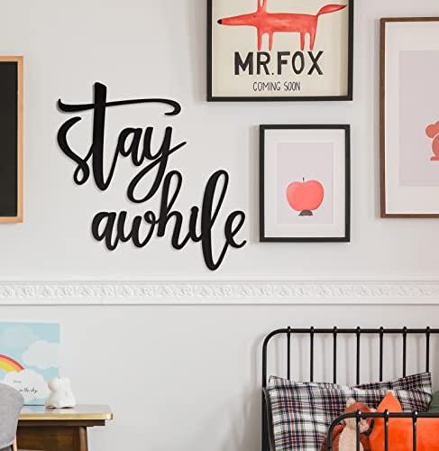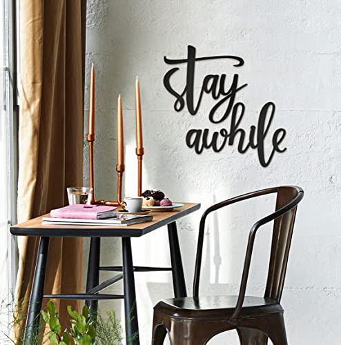Vivegate Stay Awhile Metal Wall Art Sign – 2 Pieces Black Stay Awhile Wall signs for Home Wall Decor Entryway Wall Decor (Large – 33″X15″)