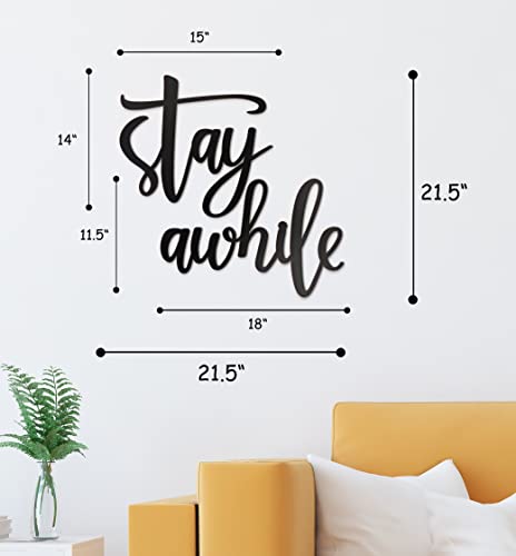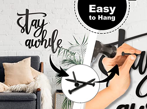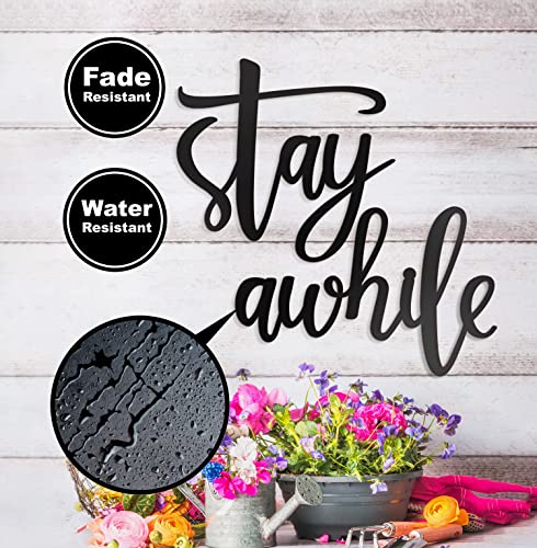 RUSTIC CHARM TO ANY ROOM – Vivegate Metal Wall art stay awhile sign for home wall decoration comes pre-finished in black. Perfect for any home, bedroom, office decor, dorm, classroom, or gym walls
