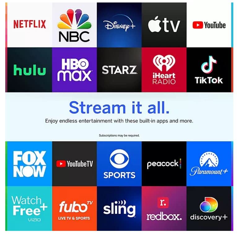 Free TV Lives Here – Save on cable bills and stream for free with VIZIO WatchFree+. Built-in to each and every new VIZIO TV, WatchFree+ offers you 250+ live streaming channels and over 5,000 titles on demand. No subscriptions, logins, or fees.