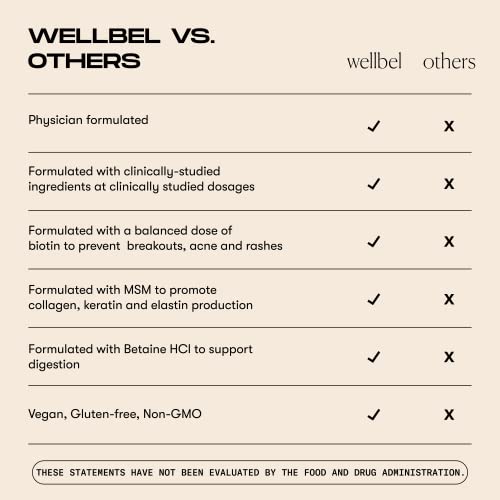 FEWER INGREDIENTS, GREATER RESULTS! Wellbel supplements are physician formulated and are vegan, gluten-free, non-GMO, and haven’t any artificial colors. Backed by science, Wellbel Women is one hundred% drug-free, clean day by day supplement with medical-grade ingredients that enhance hair, skin, and nail health.