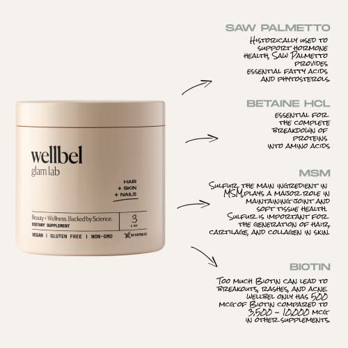 NO BIOTIN OVERLOAD! Wellbel offers a balanced dose of biotin (500mcg) preventing the risk of breakouts, rashes and acne for youthful, vibrant skin.
