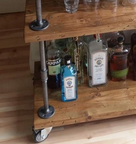 【Unfashionable Style】:Rustic industrial pipe bar seving cart.Pipe and reclaimed real wood composition in vintage style.Storage and decorations.Wine Bar Cart Serving Table on 4 wheels(2-locking wheels)and handles.It can be used outdoors