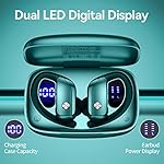 Wireless Earbuds Bluetooth Headphones 48hrs Play Back Sport Earphones with LED Display Over-Ear Buds with Earhooks Built-in Mic Headset for Workout Green BMANI-VEAT00L
