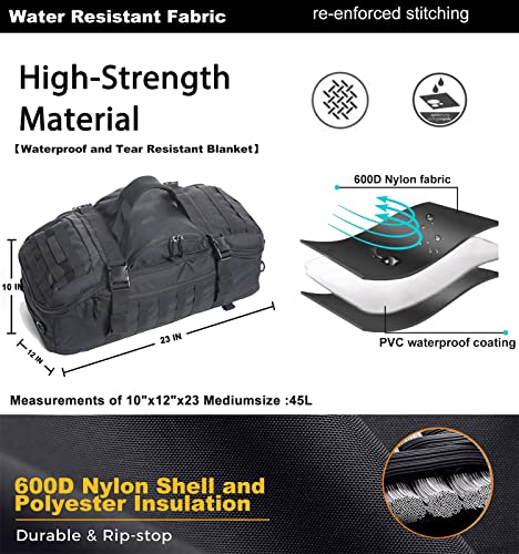 WolfWarriorX Gym Bag Duffle Bags Backpack Travel Weekender Bag for Men Women Workout Bag for Military,Sports,Overnight,Basketball,Tactical,Football Waterproof & Tear Resistant Black
