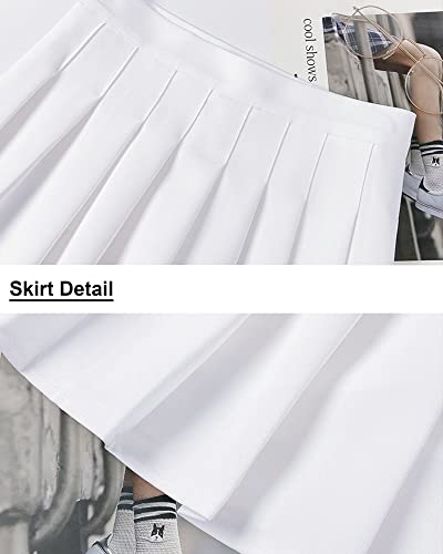 Womens Girl High Waisted Pleated Tennis Skirt School A-Line Skater Skirts with Lining Shorts