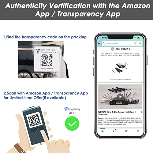 Riding Companion — Equipped with Allen Key (mm): 2 | 2.5 | 3 | 4 | 5 | 6, Socket Hex Wrench (mm): 8 | 9 | 10 and a Socket Extension Rod, Flat Wrench (mm): 8 | 10 | 15, Spoke 14GE, Slot & Cross Screwdriver, WOTOW bike all in one tool kit all the time have your back in every shuttle.