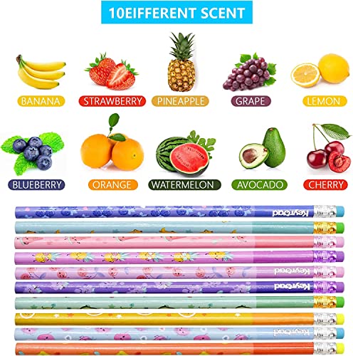 【10 Different Fruit Scented Pencils】Rub the surface of the pencil with your fingers to smell the sweet fruit aroma, the more you rub the surface of the pencil, the greater the scent produced; When writing, the aroma stimulate your sense of smell and add more fun to your study.
