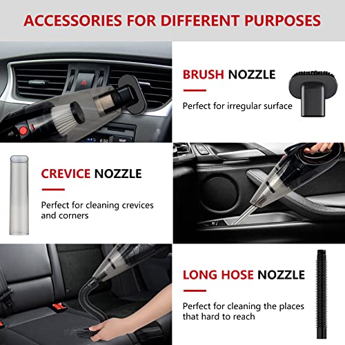 MULTIFUNCTIONAL ACCESSORIES – This portable vacuum cleaner is equipped with 3 different attachments to better meet your cleaning needs. The brush tool can loosen hair and dust which is stuck in objects for better cleaning. The crevice nozzle tool can be utilized to clean sofas, crevices and corners.The extension hose can reach the hard-to-reach area in your house or car.