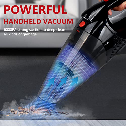 HIGH POWER SUCTION – This handheld cordless vacuum has a much stronger suction power. With a 120 watt motor and a powerful suction power of 6000 Pa, it can effectively suck up pet hair, food residue, and grit.