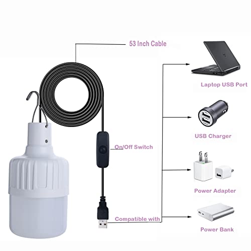 XYSRZ 2 Pack USB Light Bulb, Portable LED Lamp for Garage Warehouse Car Truck Fishing Boat Outdoor Portable LED Bulb, Emergency Light, or Children Bed Lamp