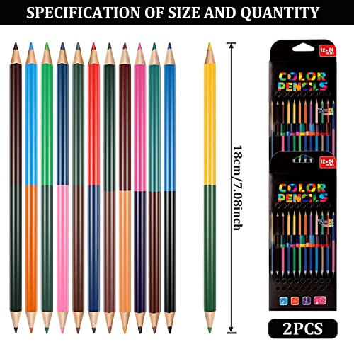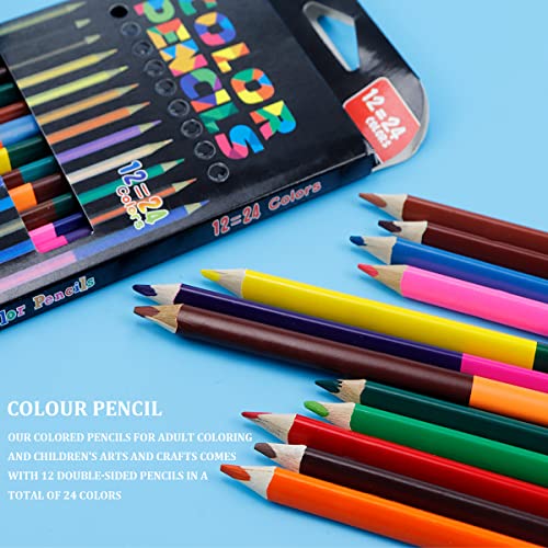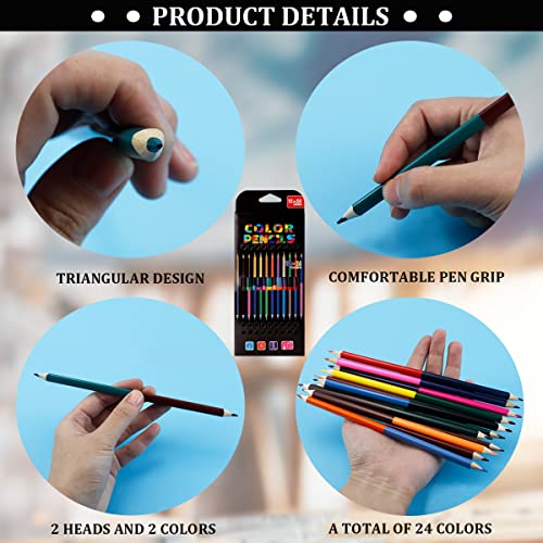 24 Pieces Color Pencils 24Colors Double-ended Erasable Pencils Pre-sharpened Art Pencils for Drawing Checking Map Coloring Tests Grading