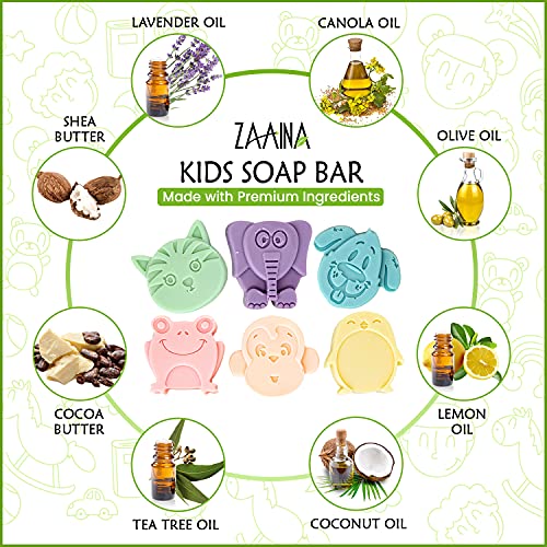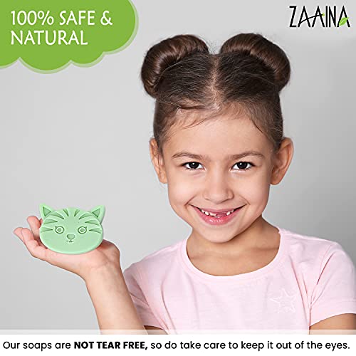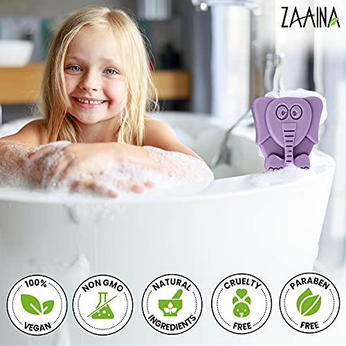 Zaaina Kids Soap, Unique, Natural, Cute Animal Shapes, Fun Bath Time for Children, Boys, Girls, for All Skin Types, Handmade in USA, No Preservatives or Artificial Ingredients 3 Pack (Elephant, Dog, Cat) by ZAAINA